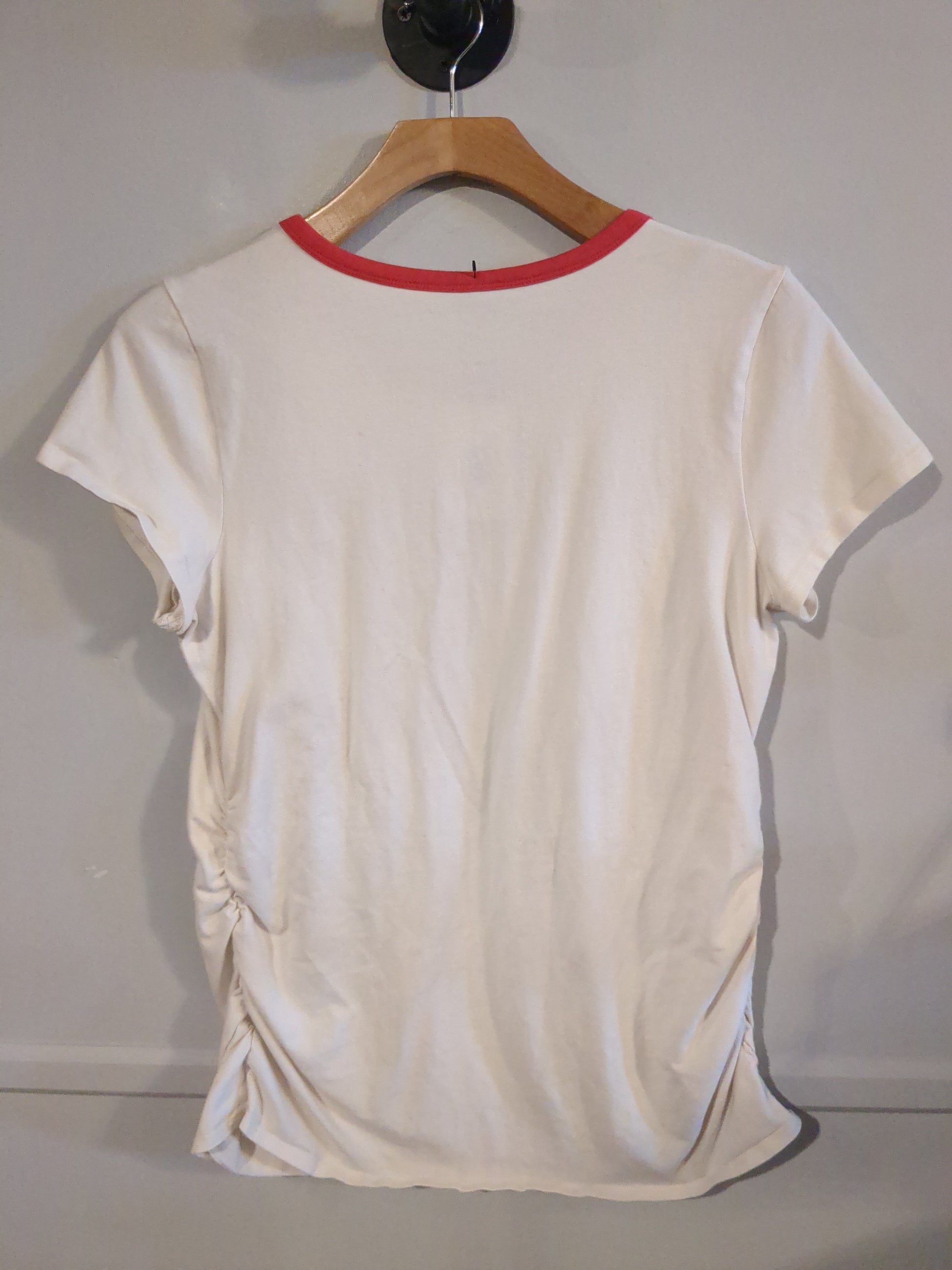 Details: Sport this cute tee throughout the season! Features a round neck, ruched sides for a comfy fit that highlights your 24/7 hard work, and a generously long straight hem. Pairs easily with white shorts and sneaks for a stylish day any day.